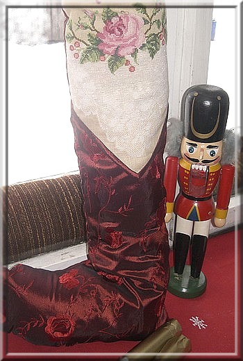 .....ein Rosenmotiv, und eine grosse Plastikkugel mit dem gestickten Rosen und Seidentaft überzogen!!!